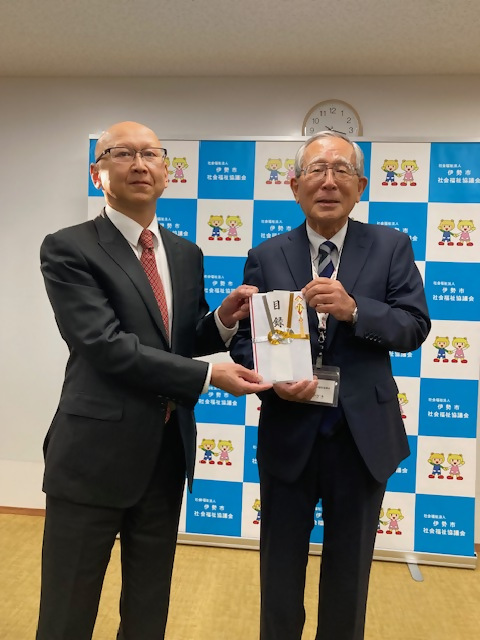 伊勢市社会福祉協議会へ伊勢病院ふれあいまつりバザー売上金の寄附を行いました。